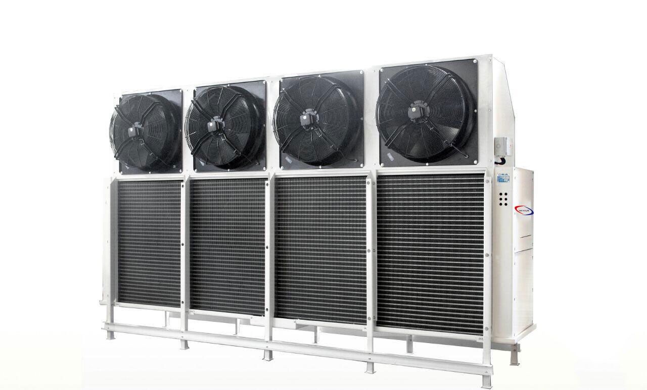 در این نوع دستگاه با عبور هوا از روی کویل گرما از هوا گرفته می شود و به مبرد درون دستگاه منتقل می شود و فین های موجود روی لوله ها باعث افزایش سطح مقطع تبادل و افزایش تبادل گرما می شود. طراحی فین ها به صورت موجدار و نحوه قرارگیری لوله ها در افزایش راندمان دستگاه تاثیر گذار می باشد و طراحی اصولی و حساب شده این دستگاه در افزایش راندمان آن بسیار تاثیر گذار می باشد.